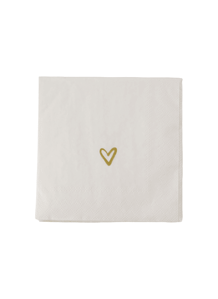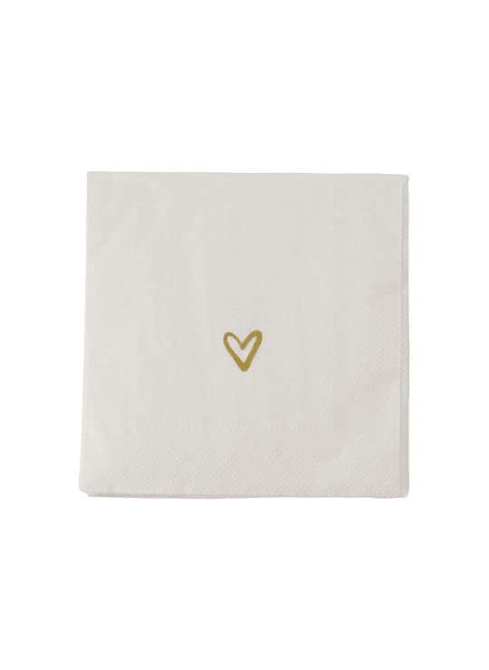 - Product: Servetten Hartje 12,5x12,5cm wit/goud / Zusss