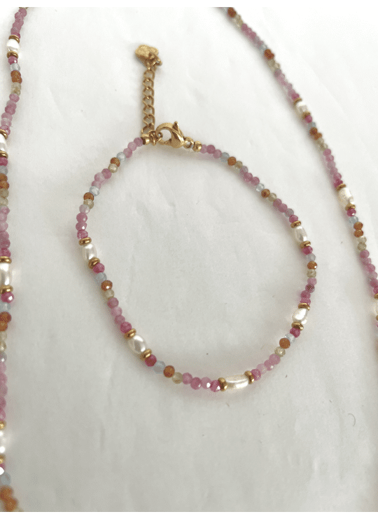 - Product: Set Armbandje + halsketting - Light pink / Stay Gold by Mme Bovary