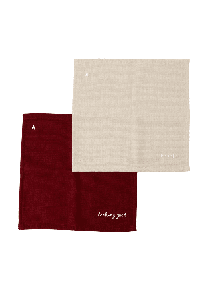 Set van 2 vaatdoekjes hartje zand/port / Zusss