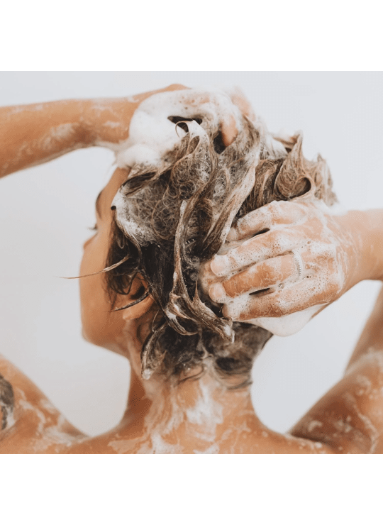 1. Masseer het schuim door je haar en was je haren zoals gewoonlijk.