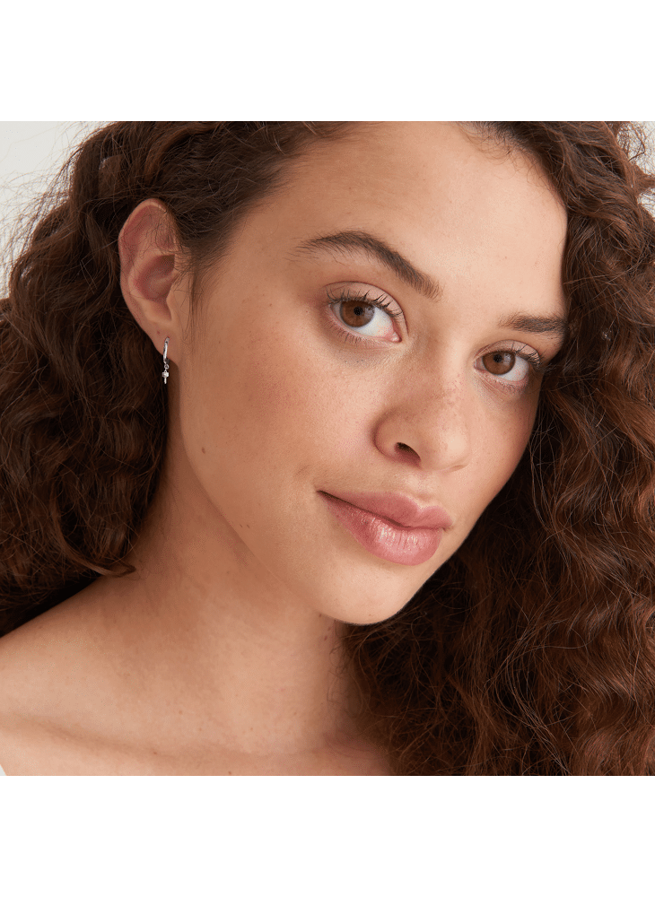 Een perfect paar eenvoudige oorringen die toch alle aandacht trekt. De gladde en gestroomlijnde middelgrote oorbel zou niet compleet zijn zonder dit prachtige detail van een microsleutelhanger om de look af te maken. Afgewerkt met een hoekige zirkoniasteen.