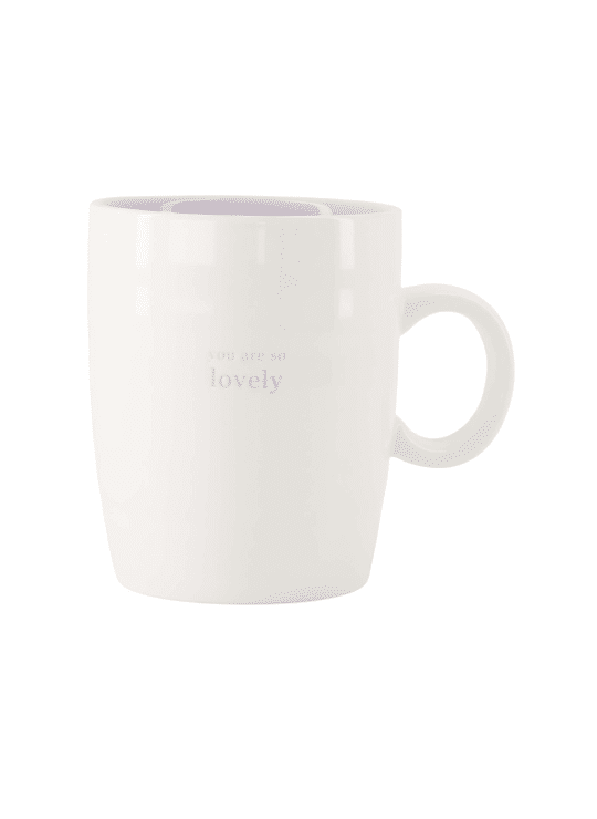 De keramieken mok heeft een frisse witte buitenkant met een zachte lila binnenkant, wat zorgt voor een lieve en stijlvolle uitstraling. Dankzij het ruime formaat ligt de mok prettig in de hand en kun je extra lang genieten van je warme drankje. Ook een mooi cadeautje om iemand een compliment te geven.