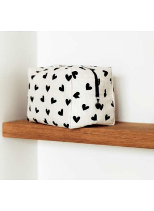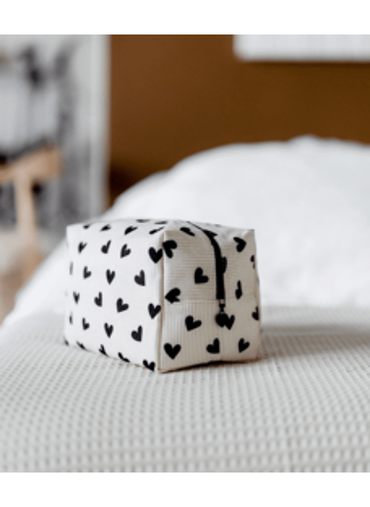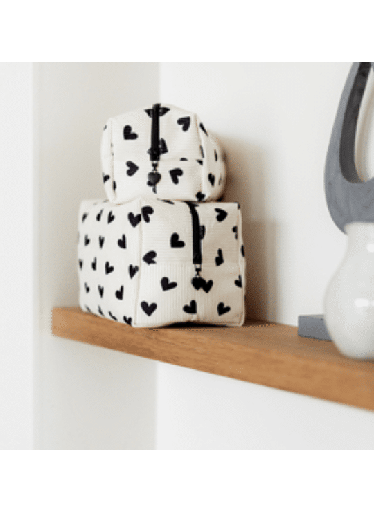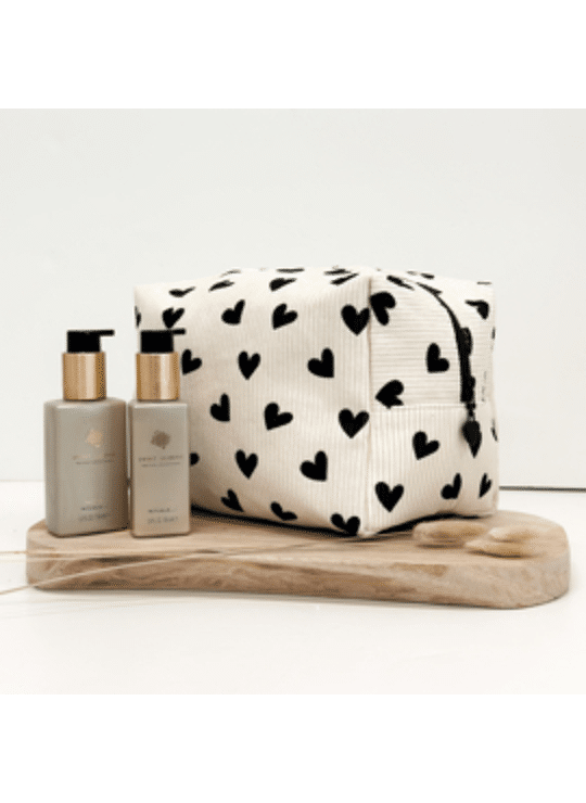 Wat een prachtige toilettas is dit! Gemaakt van ribstof met een hartjesprint. Superleuk voor al je make-up en toiletartikelen. Ga je op reis of een nachtje weg, uit logeren of naar een festival? Ga dan volledig in hartjes stijl! :-)
