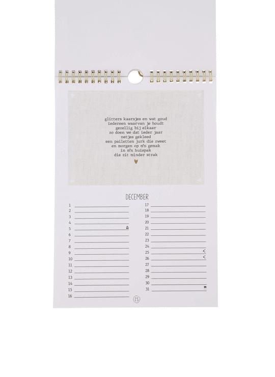 Extra leuk: bij elke maand vind je een mooi gedichtje! De kalender heeft een A4 formaat. Tip: ook erg leuk als kadootje!