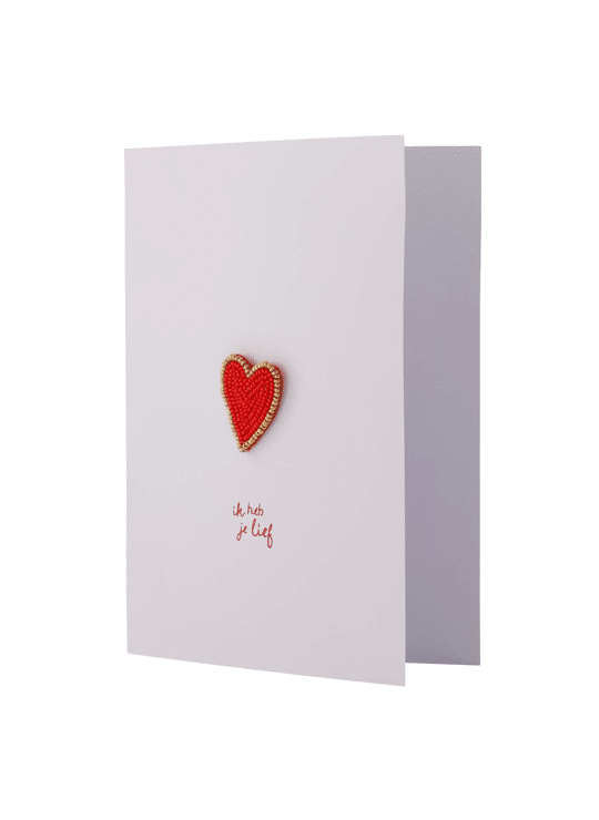 - Product: Wenskaart Hartje broche wit/rood / Zusss