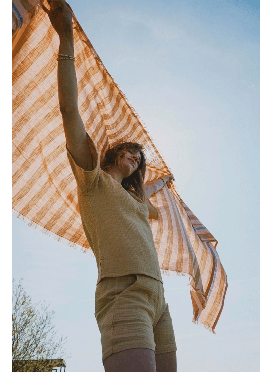 Prachtige zomerdoek van Zusss. In prachtige kleuren en strepen, afgewerkt met franjes. Deze kun je gebruiken als hammandoek, picknicklaken, strandlaken,...