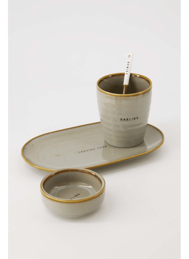 Het Zusss Dipschaaltje βDarlingβ is een sfeervol keramieken schaaltje met een glanzend grijsblauw glazuur en de speelse tekst darling. De warme bruine rand geeft het schaaltje een unieke, natuurlijke uitstraling β perfect voor wie houdt van eenvoud met karakter. πΏ