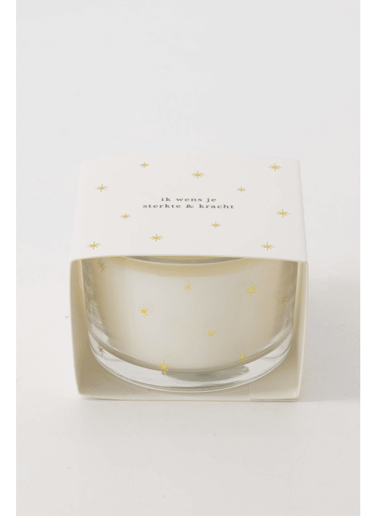 De Zusss Geurkaars ‘Liefde & Kracht’ is een teder geschenk voor wie wat extra warmte of steun kan gebruiken. Dit glazen kaarsje met gouden sterretjes straalt een zachte, warme gloed uit zodra het brandt en brengt rust en licht in moeilijke momenten. 💛