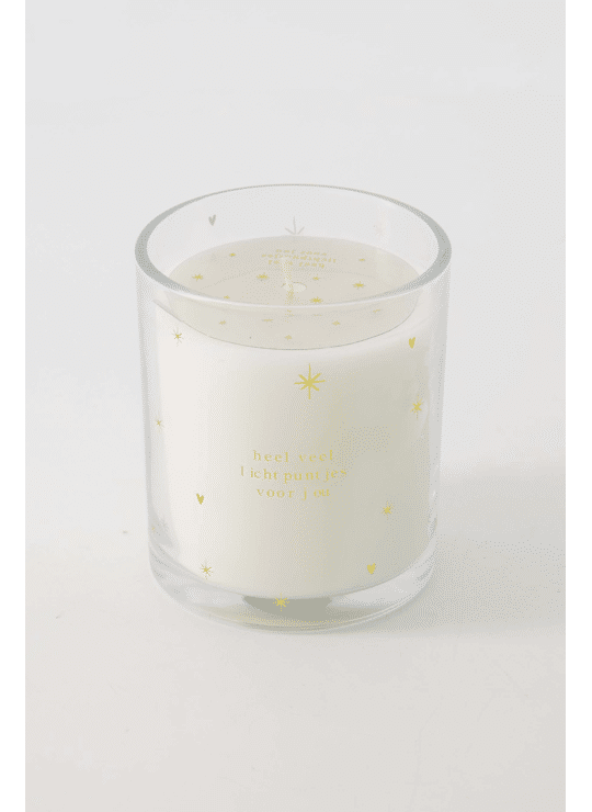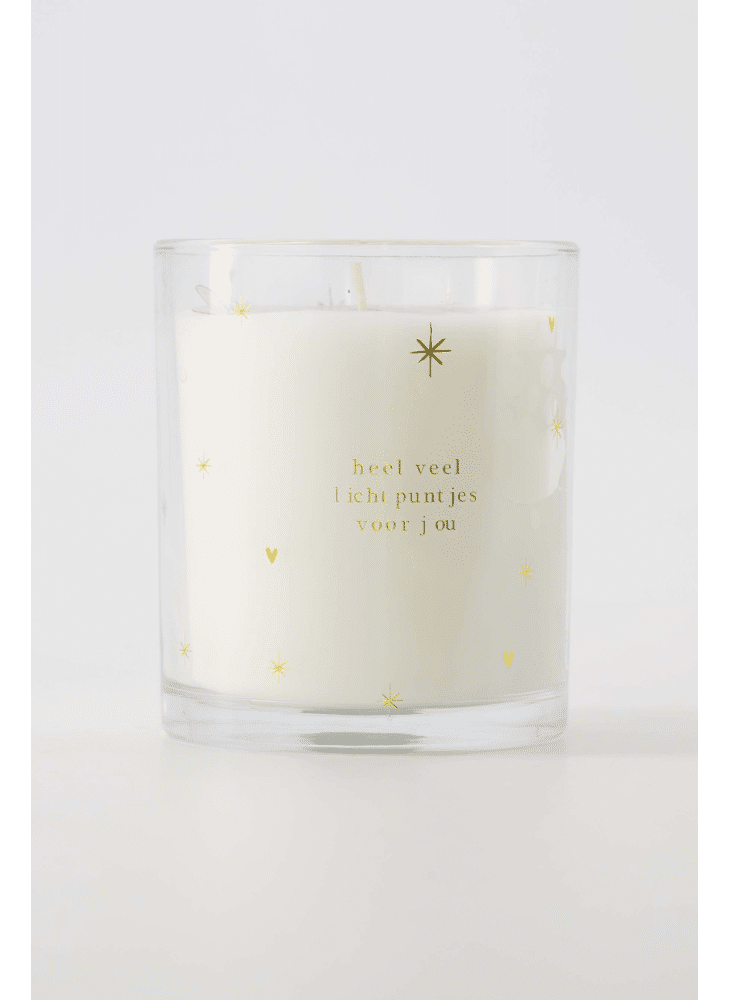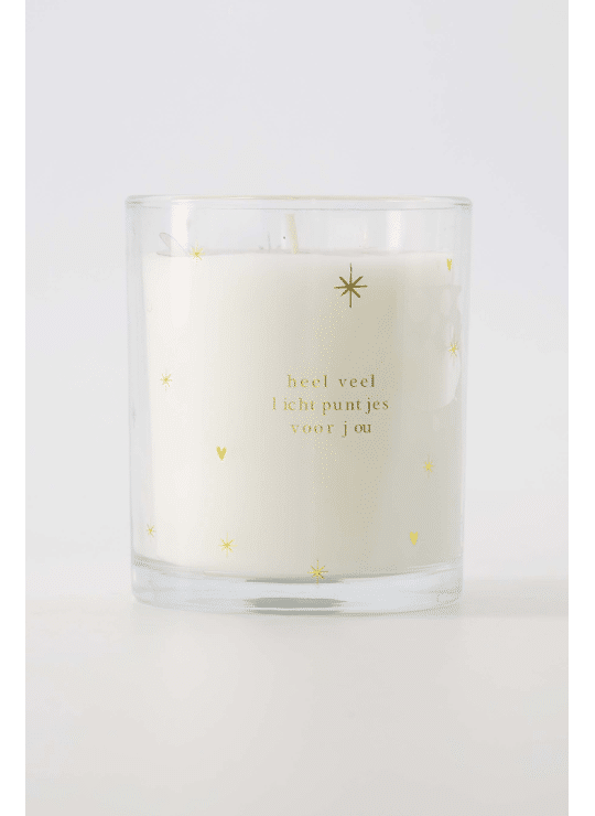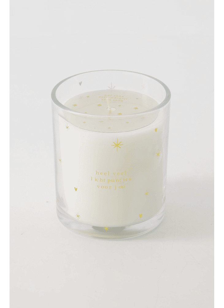 De Zusss Geurkaars ‘Sterren’ is gemaakt van transparant glas met subtiele gouden sterretjes en de lieve tekst “Heel veel lichtpuntjes voor jou”. Deze sfeervolle kaars brengt direct gezelligheid en een warme gloed in huis – perfect om te geven of om zelf van te genieten. 🤍