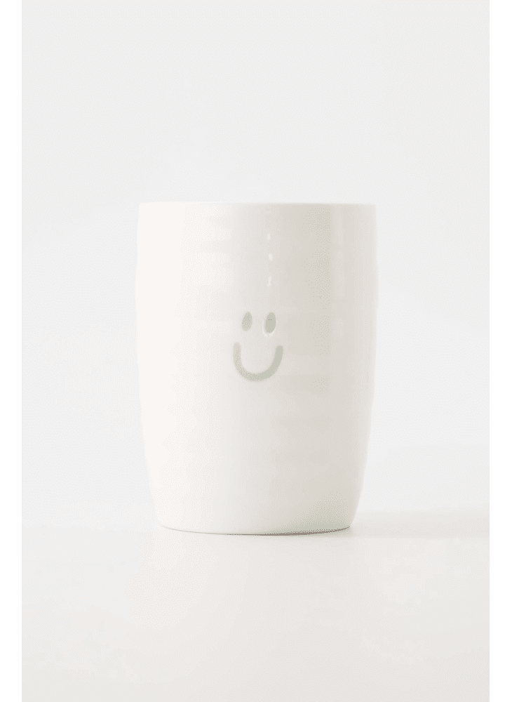 β’ β Keramieken mok β wit met grijsblauwe smiley in mat glazuur