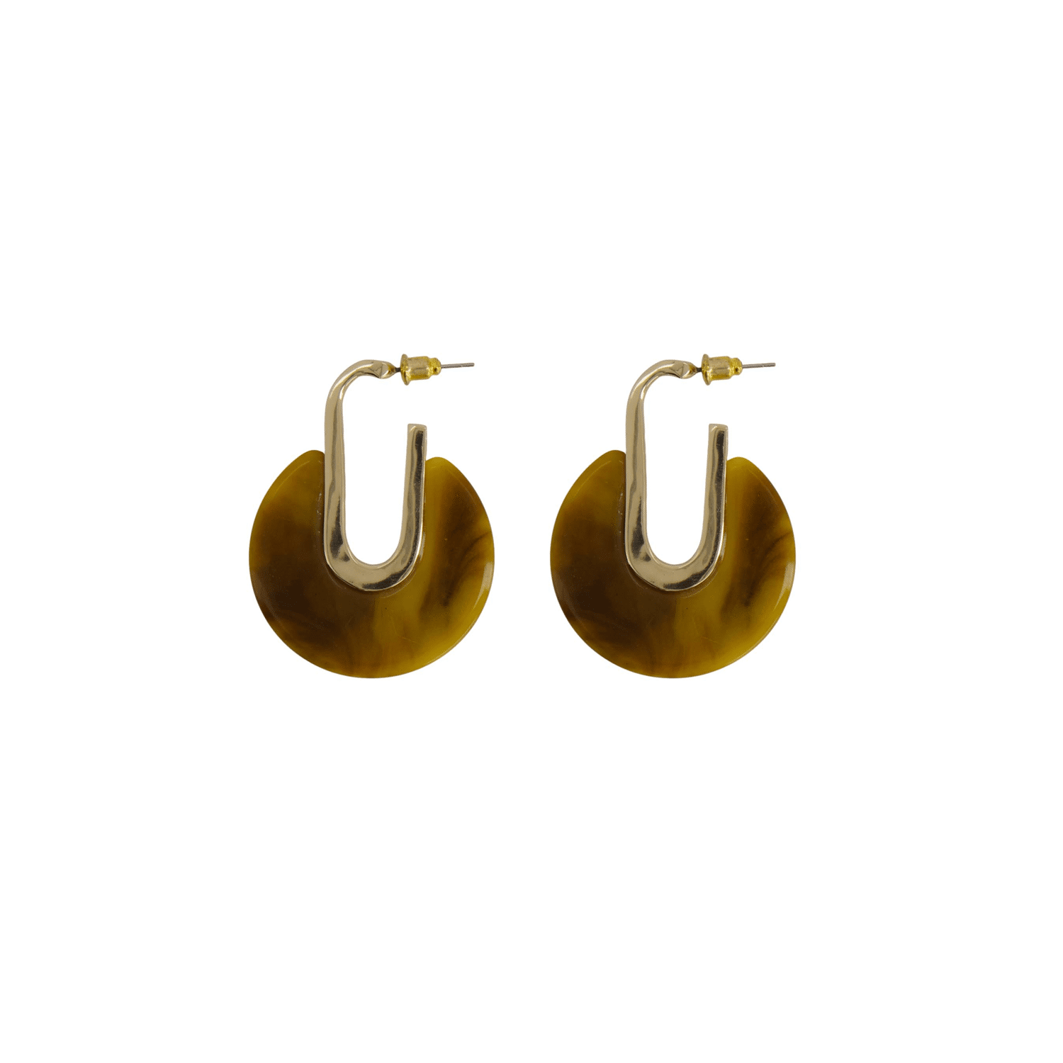 De oorbellen combineren resin en metaal tot een licht en comfortabel geheel. Het ronde design geeft een speelse, maar toch stoere uitstraling. Verkrijgbaar in twee stijlvolle kleuren: moss green en mid brown.