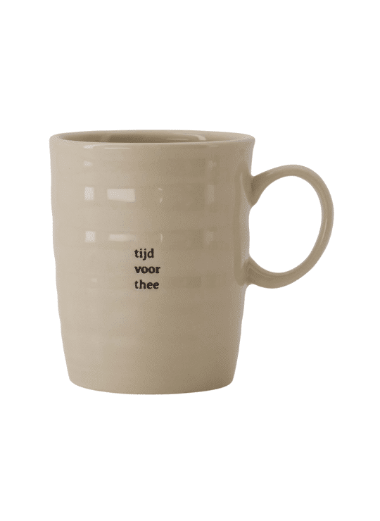 De mok is vervaardigd uit stevig keramiek en heeft een natuurlijke uitstraling. Het lichte reliëf geeft de mok een speels, bijna handgemaakt effect. De tekst “tijd voor thee” in zwarte letters maakt deze theemok extra charmant en perfect voor een ontspannen momentje voor jezelf.