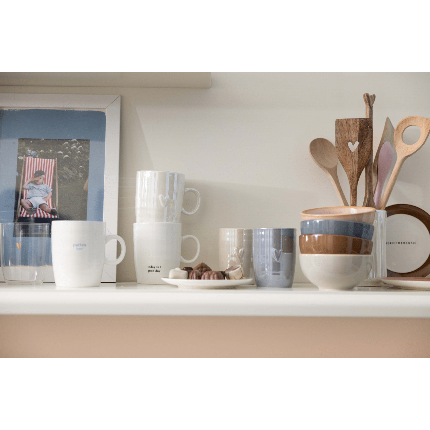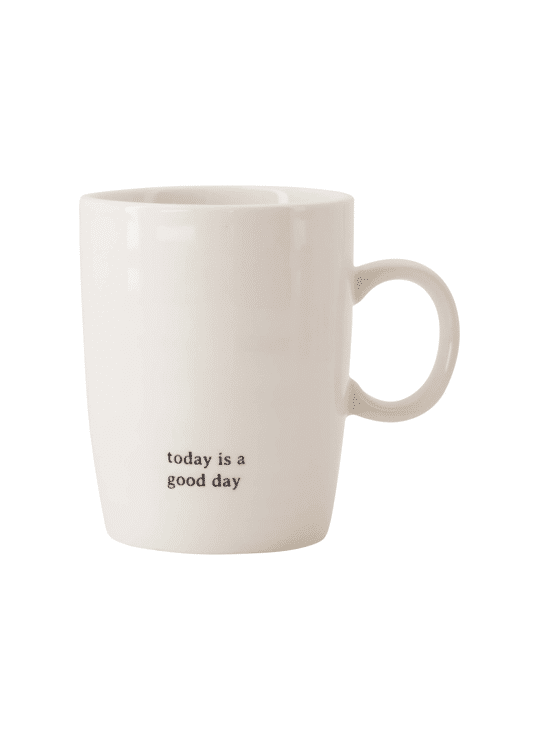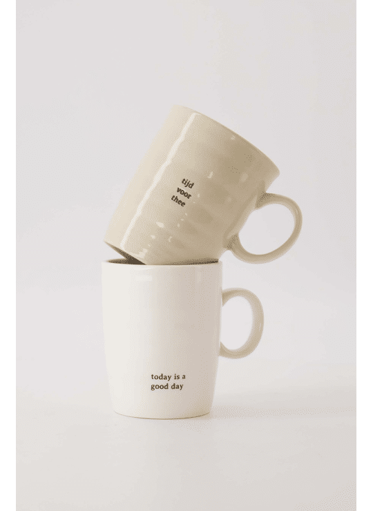 De mok is gemaakt van stevig keramiek en heeft een subtiel reliëf dat zorgt voor een speels, bijna handgemaakt effect. De tekst “Today is a good day” geeft deze theemok een vrolijke en motiverende uitstraling – ideaal om je dag goed te beginnen.