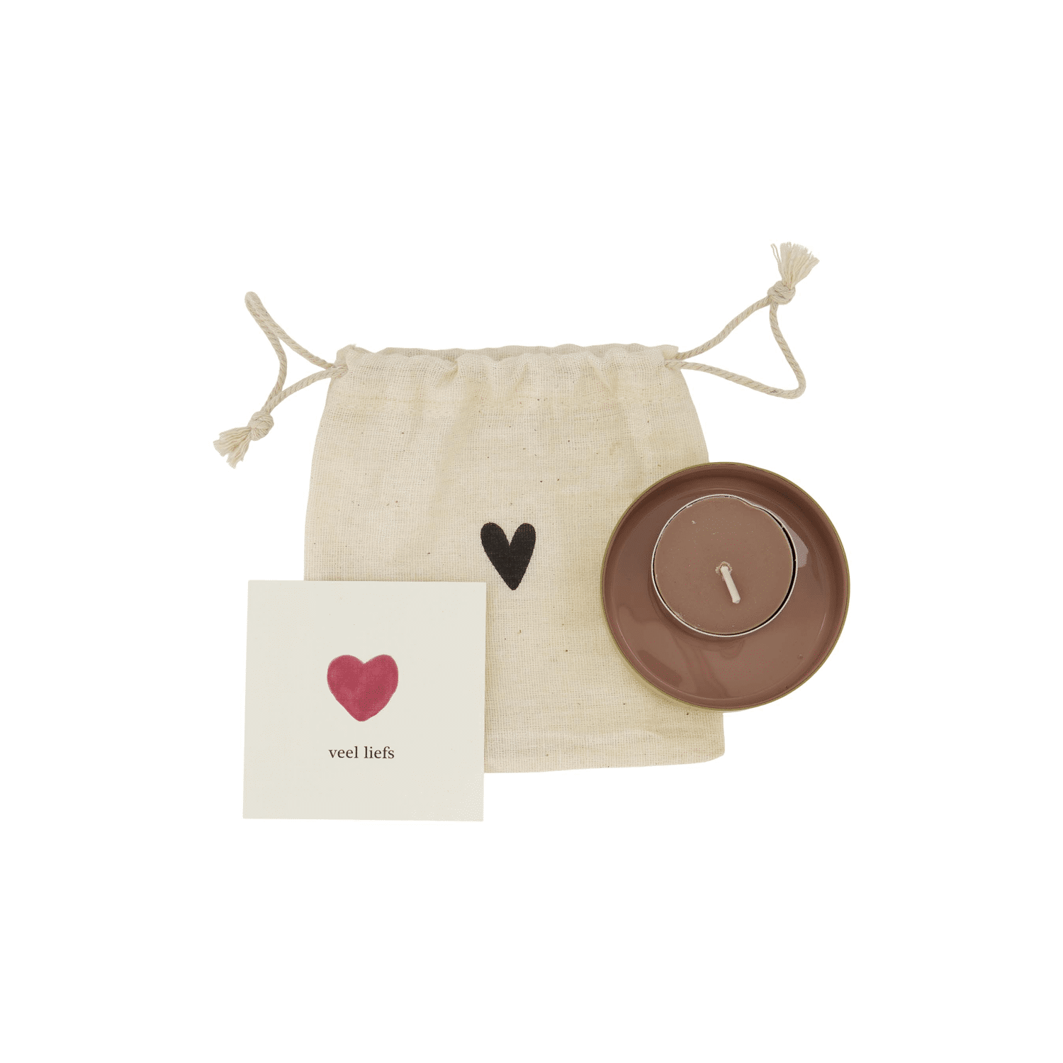 De waxinelichthouder wordt geleverd in een katoenen zakje met een zwart hartje — een mooi detail dat past bij de typische Zusss-stijl: basic, stoer, uniek en een tikkeltje eigenwijs.