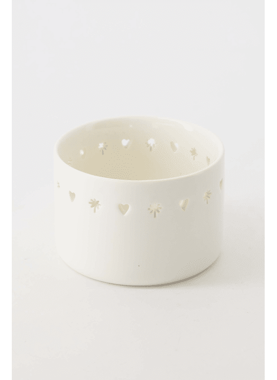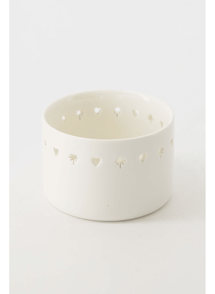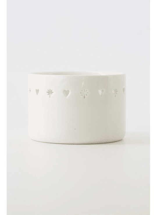 Deze waxinelichthouder van Zusss is gemaakt van keramiek en voorzien van kleine gaatjes in de vorm van hartjes en sterretjes aan de bovenzijde.